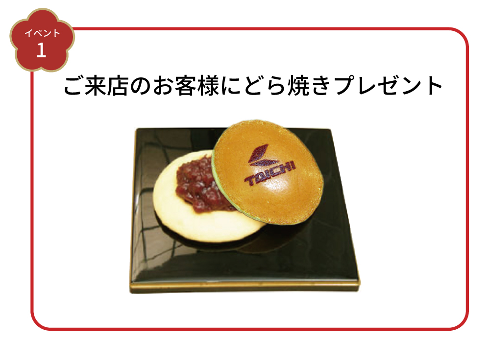 ご来店のお客様に、どら焼きのプレゼント&新春運試しイベントを開催いたします。
